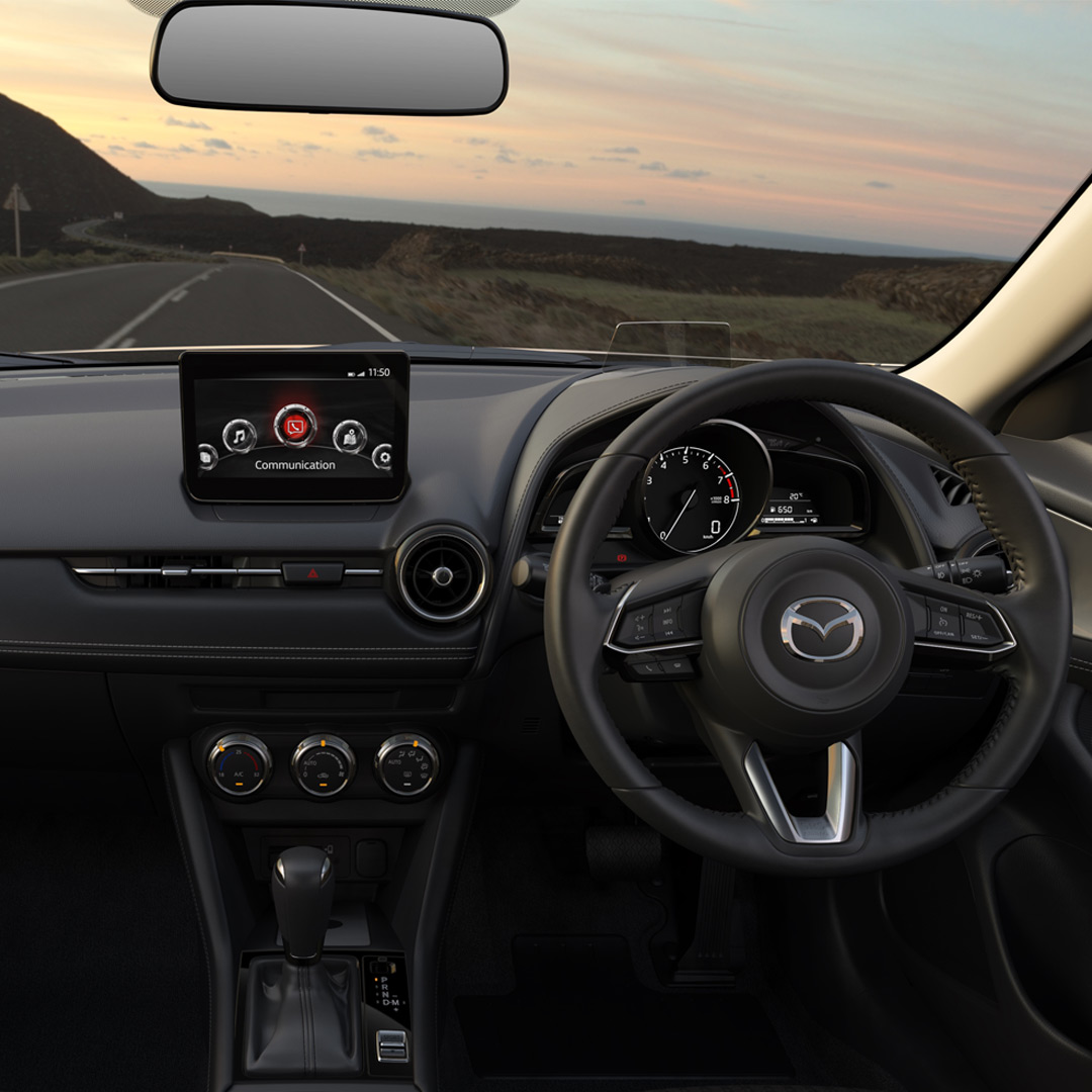 Di dalam kabinnya, Mazda CX3 Sport dan Pro menawarkan ruang yang luas dengan desain interior yang mewah. Material-material berkualitas tinggi menghiasi setiap detail, termasuk jok-jok berbalut kulit yang memberikan kenyamanan maksimal bagi pengemudi dan penumpang. Teknologi mutakhir seperti sistem infotainment dengan layar sentuh besar dan navigasi terintegrasi menambah nilai eksklusif dalam pengalaman berkendara.